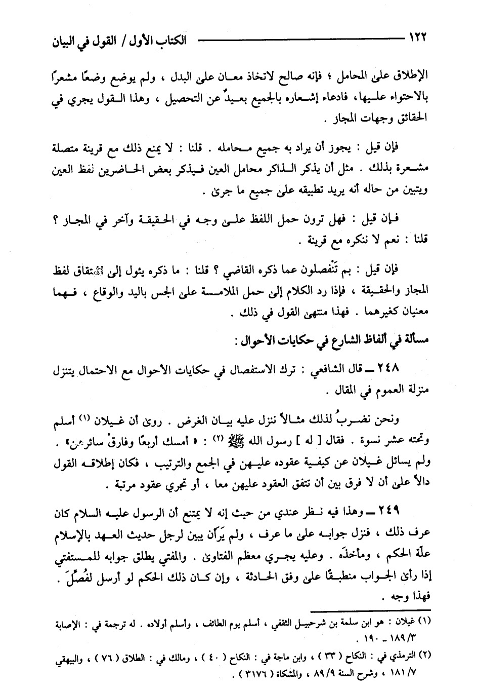 248- قال الشافعي: ترك الاستفصال في حكايات الأحوال مع الاحتمال يتنزل منزلة العموم في المقال.