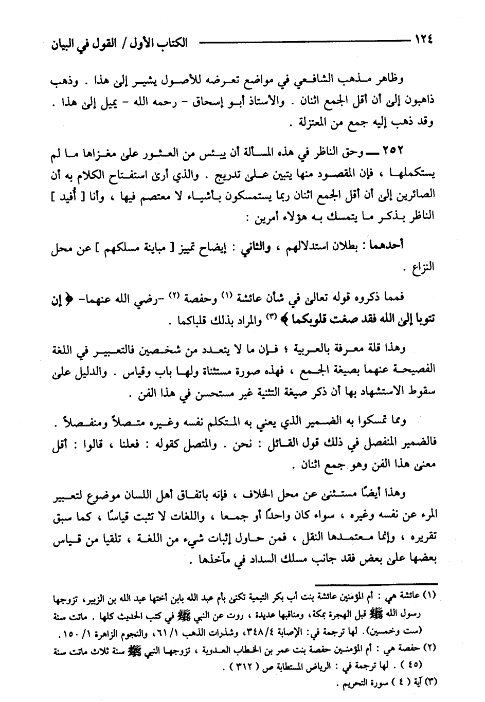 252- وحق الناظر في هذه المسألة أن ييئس من العثور على مغزاها ما لم يستكملها فإن المقصود منها يتبين على تدريج والذي أرى استفتاح الكلام به أن الصائرين إلى أن أقل الجمع اثنان ربما يستمسكون بأشياء لا معتصم فيها وأنا [أفيد] الناظر بذكر ما يتمسك به هؤلاء أمرين.