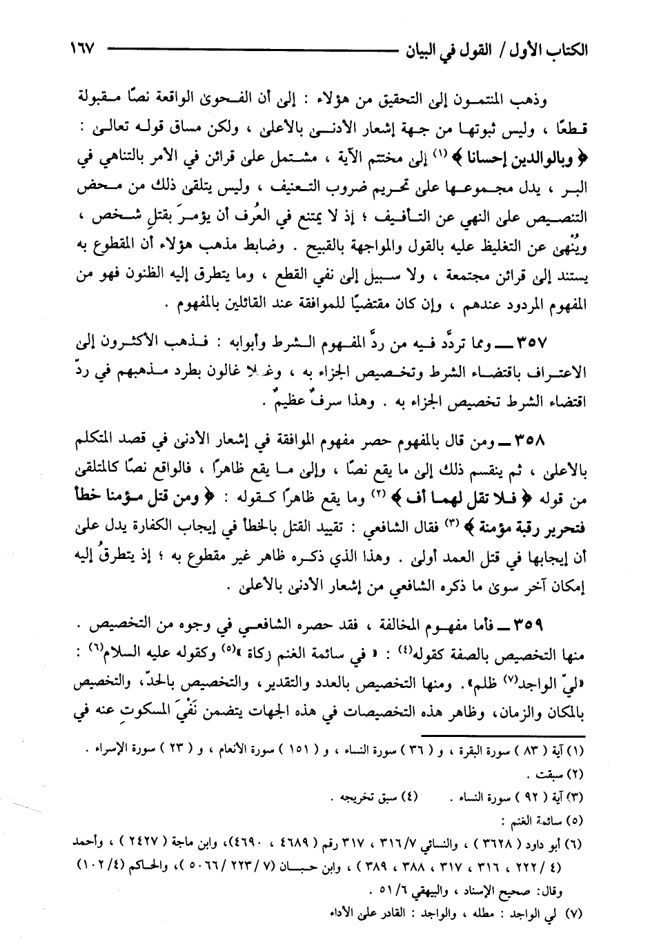 357- ومما تردد فيه من رد المفهوم الشرط وأبوابه فذهب الأكثرون إلى الاعتراف باقتضاء الشرط وتخصيص الجزاء به وغلا غالون بطرد مذهبهم في رد اقتضاء الشرط تخصيص الجزاء به وهذا سرف عظيم.