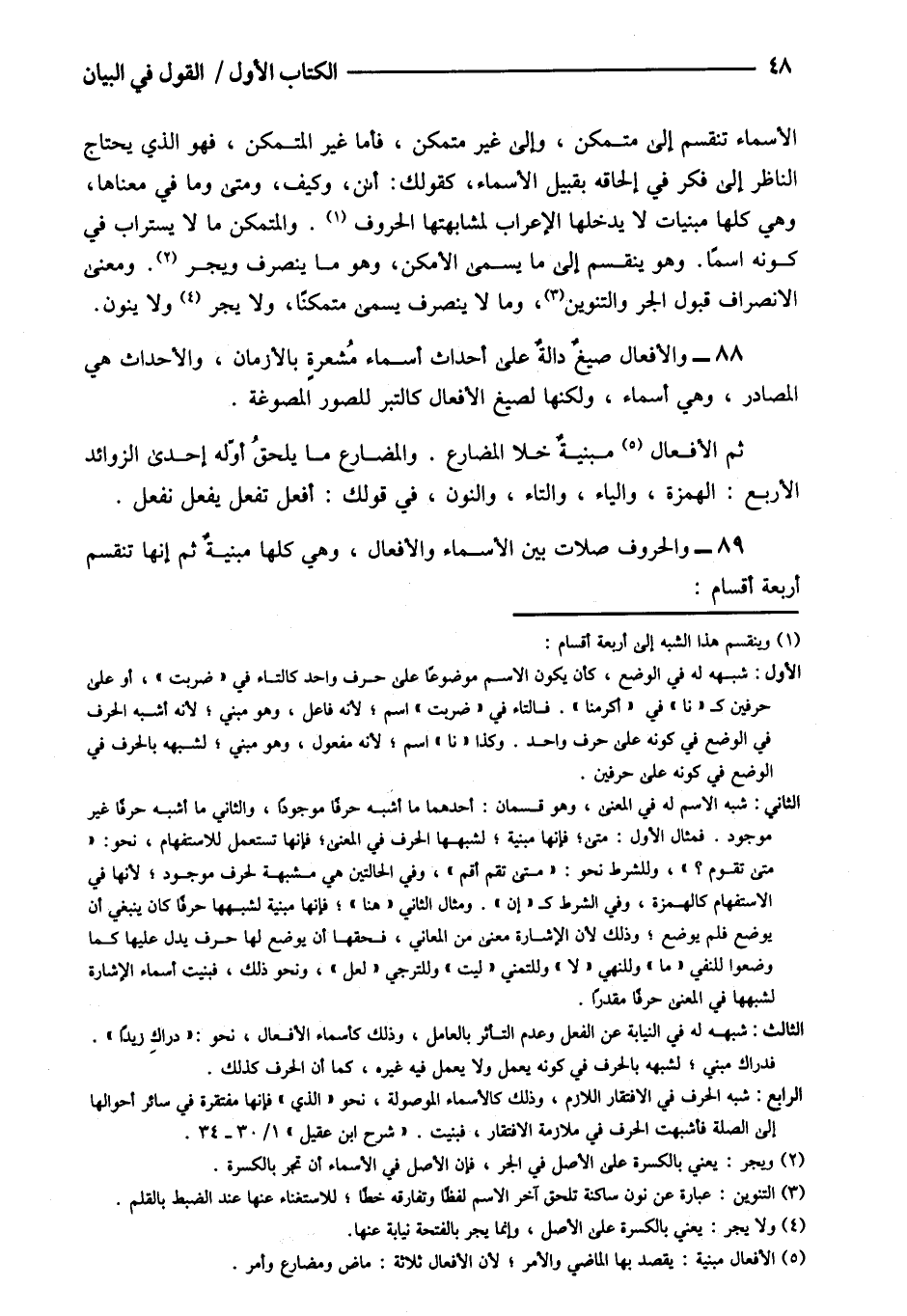 89- والحروف صلات بين الأسماء والأفعال وهي كلها مبنية ثم إنها تنقسم أربعة أقسام:.