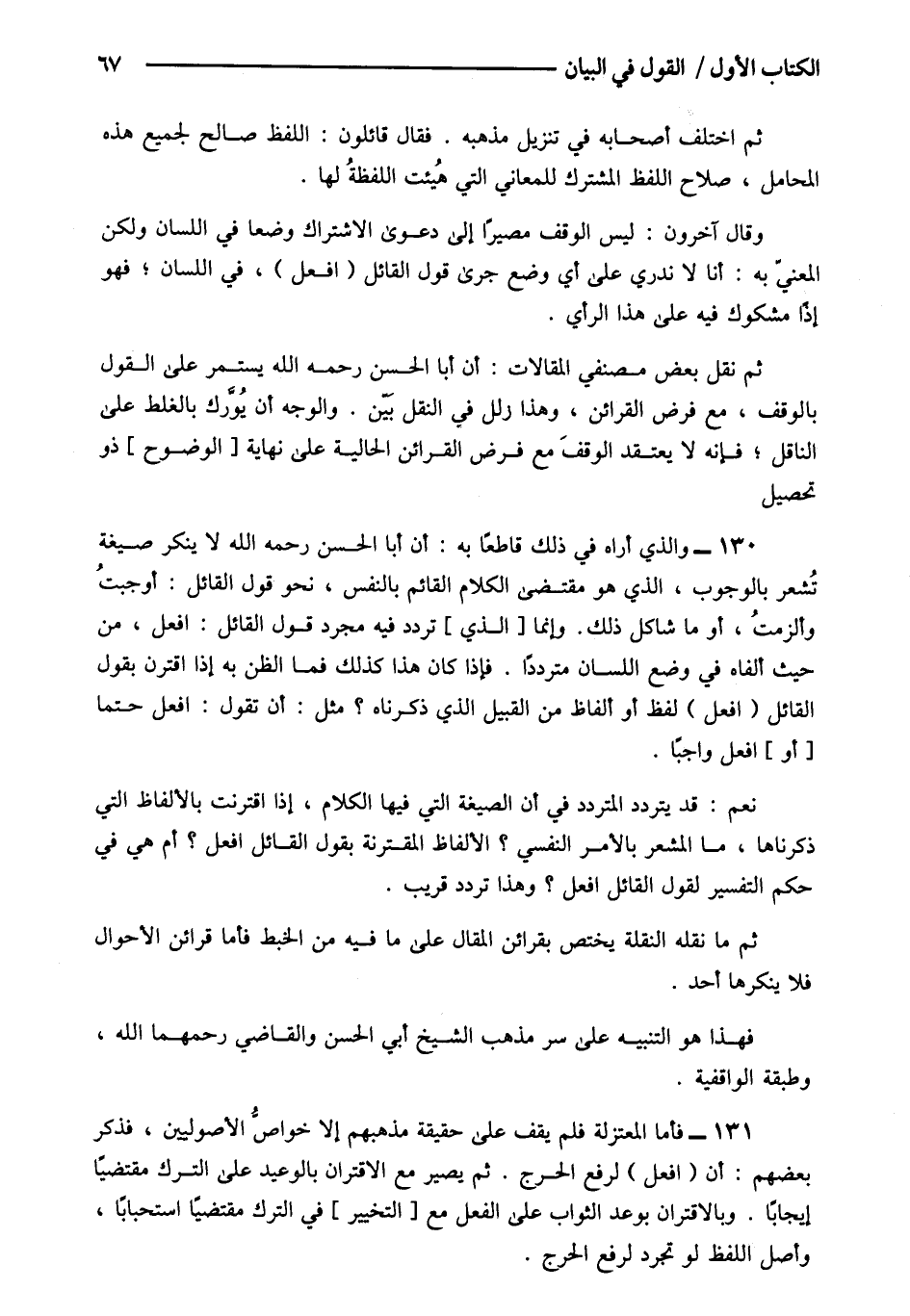 130- والذي أراه في ذلك قاطعا به أن أبا الحسن رحمه الله لا ينكر صيغة تشعر بالوجوب الذي هو مقتضى الكلام القائم بالنفس نحو قول القائل أوجبت.