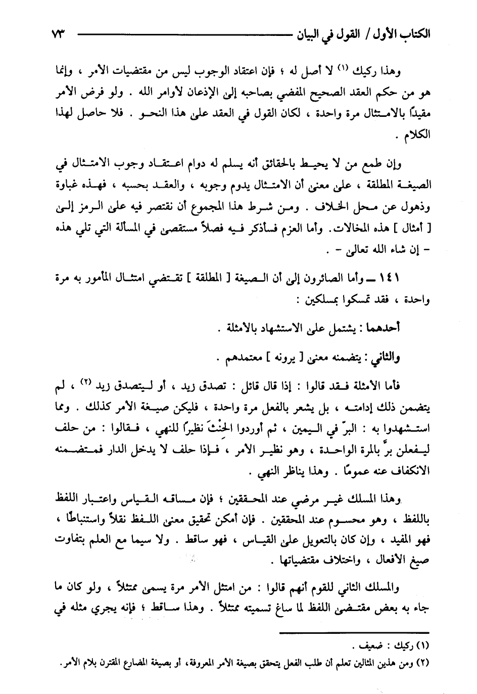 141- وأما الصائرون إلى أن الصيغة [المطلقة] تقتضي امتثال المأمور به مرة واحدة فقد تمسكوا بمسلكتين.
