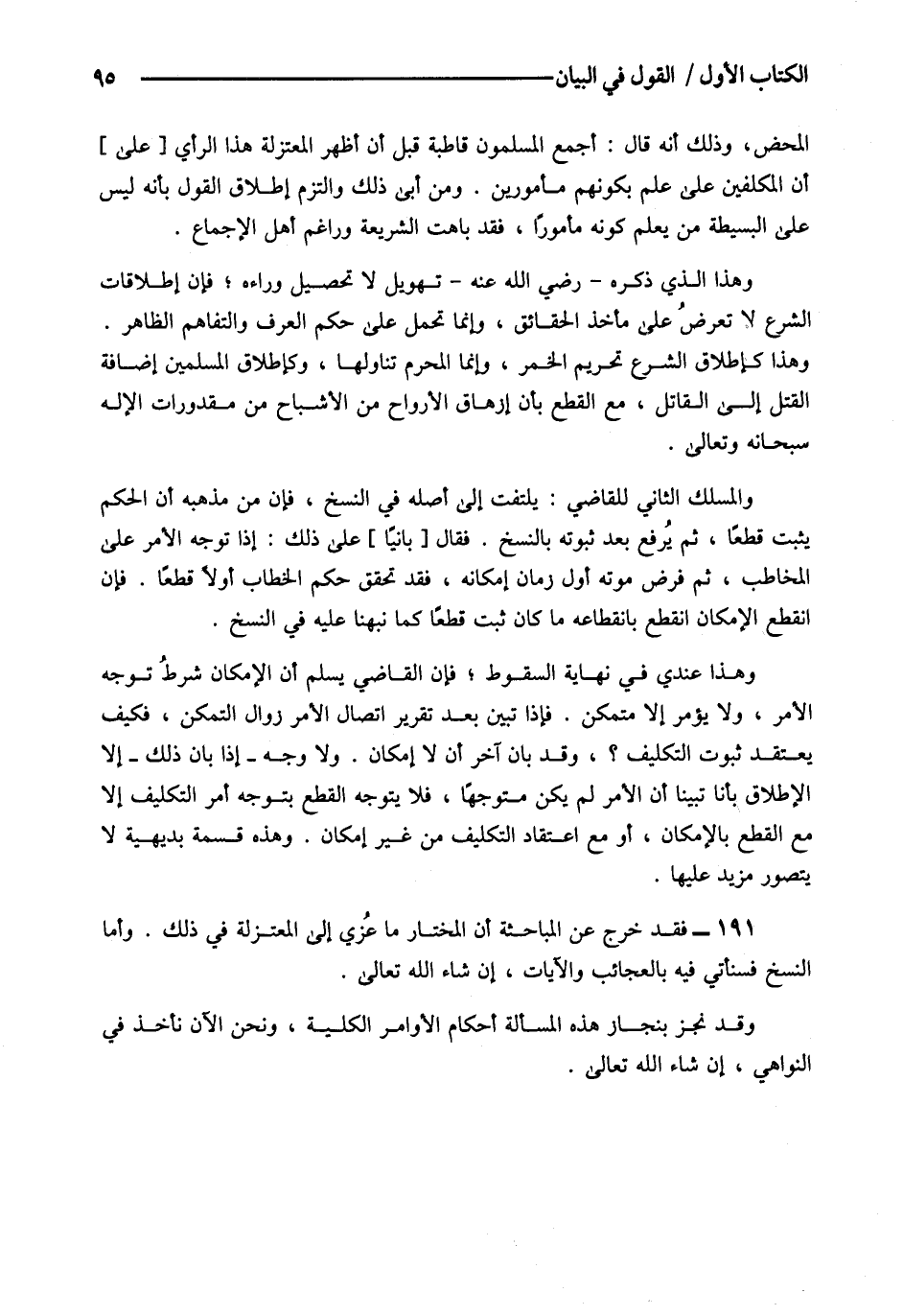 191- فقد خرج عن المباحثة أن المختار ما عزى إلى المعتزلة في ذلك.