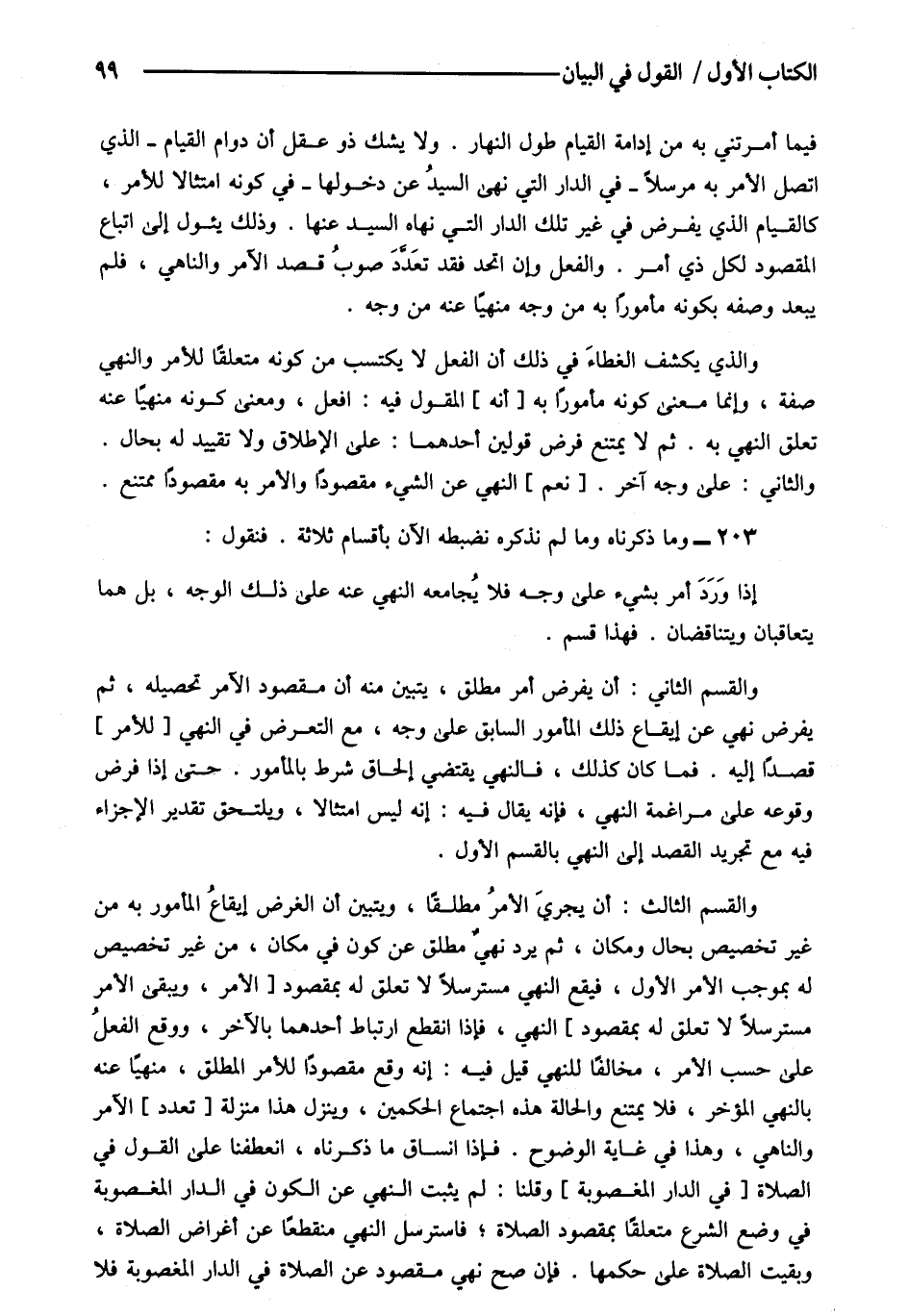 203- وما ذكرناه وما لم نذكره نضبطه الآن بأقسام ثلاثة فنقول: