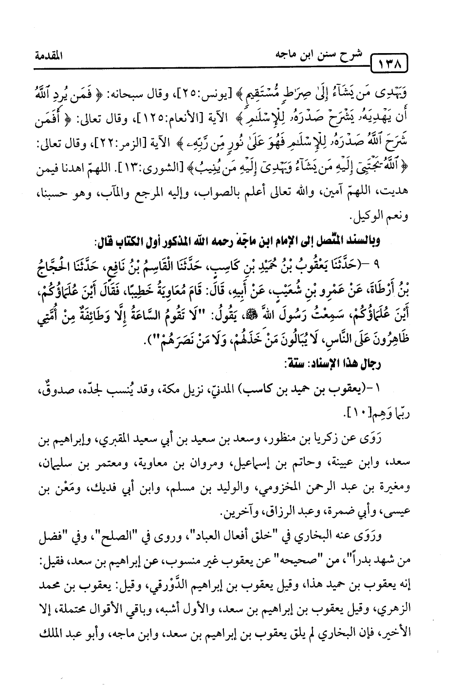 9 - (حَدَّثَنَا يَعْقُوبُ بْنُ حُمَيْدِ بْنِ كَاسِبٍ، حَدَّثَنَا الْقَاسِمُ بْنُ نَافِعٍ، حَدَّثَنَا الحجَّاجُ بْنُ أَرْطَاةَ، عَنْ عَمْرِو بْنِ شُعَيْبٍ، عَنْ أَبِيهِ، قَالَ: قَامَ مُعَاوِيَةُ خَطِيبًا، فَقَالَ أَيْنَ عُلَمَاؤُكُمْ، أَيْنَ عُلَمَاؤُكُمْ، سَمِعْتُ رَسُولَ الله -صلى الله عليه وسلم-، يَقُولُ: "لَا تَقُومُ السَّاعَةُ إِلَّا وَطَائِفَةٌ مِنْ أُمَّتِي ظَاهِرُونَ عَلَى النَّاسِ، لَا يُبَالُونَ مَنْ خَذَلهُمْ، وَلَا مَنْ نَصَرَهُمْ").