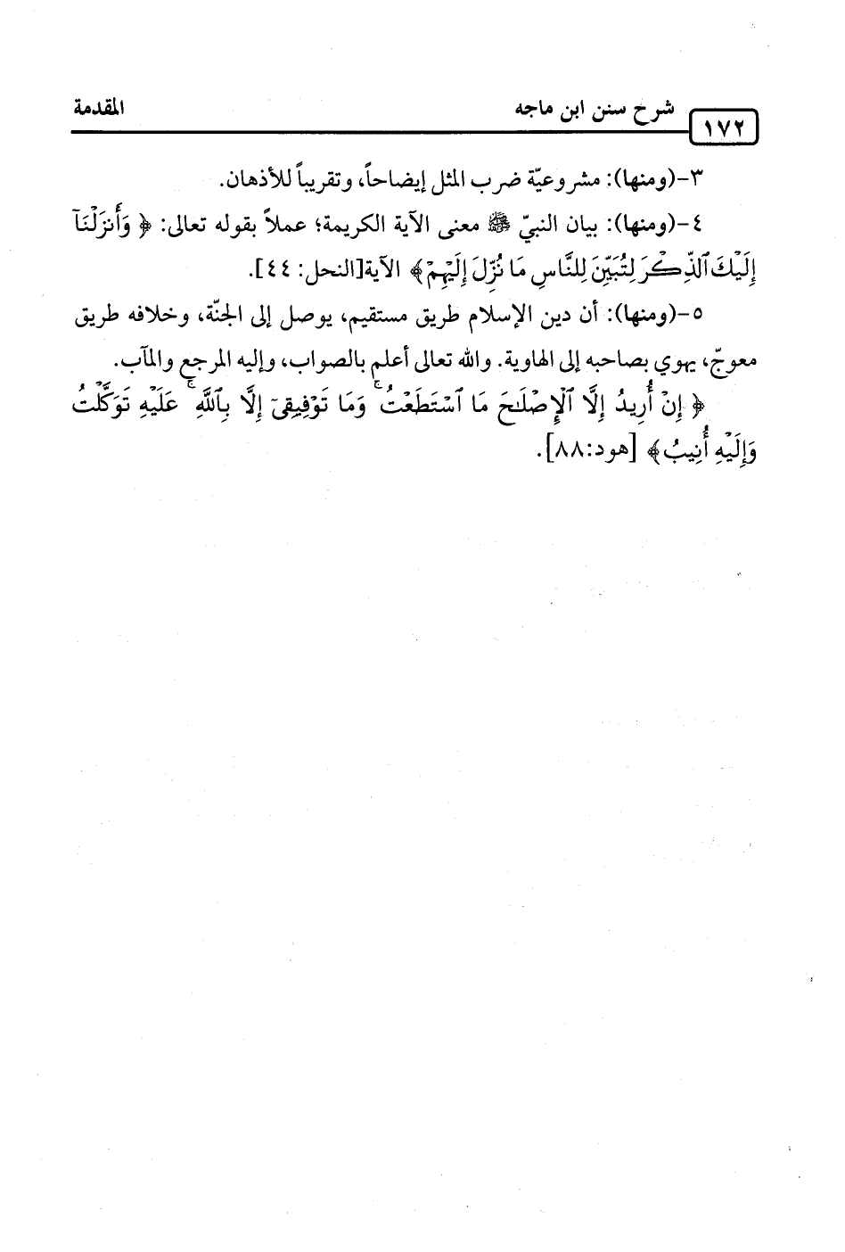 5 - (ومنها): أن دين الإسلام طريق مستقيم، يوصل إلى الجنّة، وخلافه طريق معوجّ، يهوي بصاحبه إلى الهاوية. والله تعالى أعلم بالصواب، وإليه المرجع والمآب.