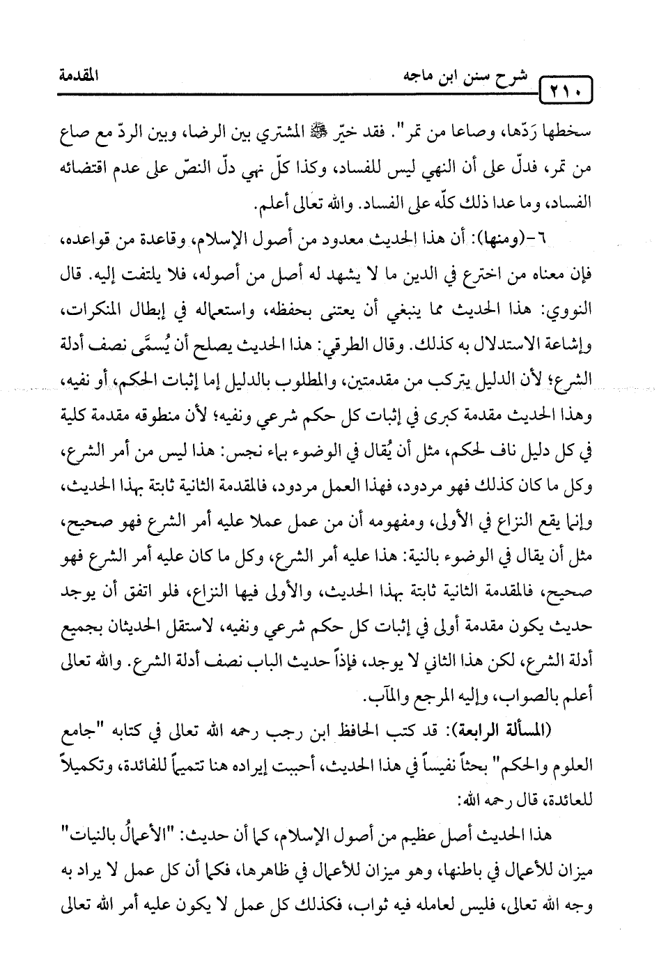 (المسألة الرابعة): قد كتب الحافظ ابن رجب رحمه الله تعالى في كتابه "جامع العلوم والحكم" بحثًا نفيسًا في هذا الحديث، أحببت إيراده هنا تتميمًا للفائدة، وتكميلًا للعائدة، قال رحمه الله: