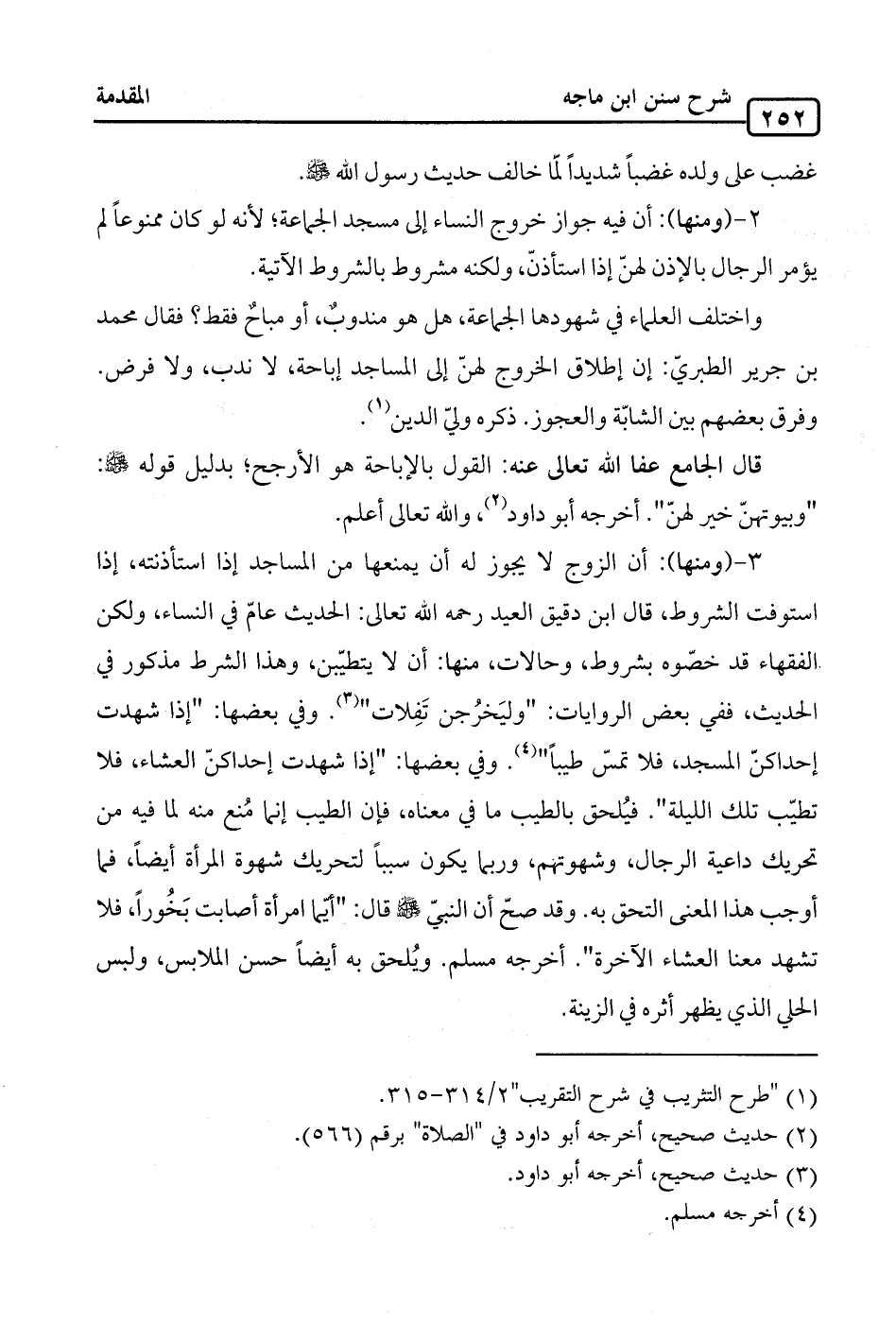 قال الجامع عفا الله تعالى عنه: القول بالإباحة هو الأرجح؛ بدليل قوله -صلى الله عليه وسلم-: "وبيوتهنّ خير لهنّ". أخرجه أبو داود (¬2)، والله تعالى أعلم.