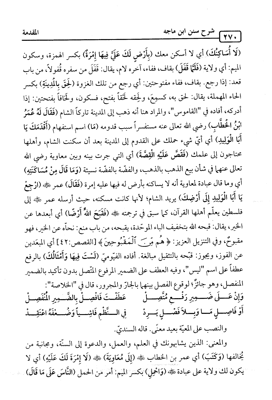 (لَا أُسَاكِنُكَ) أي لا أسكن معك (بِأَرْضٍ لَكَ عَلَيَّ فِيها إِمْرَةٌ) بكسر الهمزة، وسكون الميم: أي ولاية (فَلَمَّا قَفَلَ) بقاف، ففاء، آخره لام، يقال: قَفَلَ من سفره قُفولًا، من باب قعد: إذا رجع. بقاف، ففاء مفتوحتين: أي رجع من تلك الغزوة (لَحِقَ بِالمدِينةِ) بكسر الحاء المهملة، يقال: لحق به، كسمِعَ، ولَحِقه لحقًا بفتح، فسكون، ولَحَاقًا بفتحتين: إذا أدركه، أفاده في "القاموس"، والمراد هنا أنه ذهب إلى المدينة تاركًا الشام (فَقَالَ لَهُ عُمَرُ ابْنُ الخطَّابِ) رضي الله تعالى عنه مستفسرًا سبب قدومه (مَا) اسم استفهام (أَقدَمَكَ يَا أَبا الوليدِ) أي أيّ شيء حملك على القدوم إلى المدينة بعد أن سكنت الشام، وأهلها محتاجون إلى علمك (فَقَصَّ عَلَيْهِ القِصَّةَ) أي التي جرت بينه وبين معاوية رضي الله تعالى عنهما في شأن بيع الذهب بالذهب، والفضّة بالفضّة نسيئة (وَمَا قَالَ مِنْ مُسَاكَنَتِهِ) أي وما قال عبادة لمعاوية أنه لا يساكنه بأرض له فيها عليه إمرة (فَقَالَ) عمر -رضي الله عنه- (ارْجِعْ يَا أَبا الْوَليدِ إِلَى أَرْضِكَ) يريد الشام؛ لأنها كانت مسكنه، حيث أرسله عمر -رضي الله عنه- إلى فلسطين يعلّم أهلها القرآن، كما سبق في ترجمته -رضي الله عنه- (فقَبَحَ الله أَرْضًا) أي أبعدها عن الخير، يقال: قبحه الله بتخفيف الباء الموحّدة، يقبحه، من باب منع: نحّاه عن الخير، فهو مقبوحٌ، وفي التنزيل العزيز: {هُمْ مِنَ الْمَقْبُوحِينَ} [القصص: 42] أي المبعَدين عن الفوز، ويجوز: قبّحه بالتثقيل مبالغة. أفاده الفيّوميّ (لَسْتَ فيِهَا وَأَمْثَالُكَ) بالرفع عطفًا على اسم "ليس"، وفيه العطف على الضمير المرفوع المتّصل بدون تأكيد بالضمير المنفصل، وهو جائزٌ؛ لوقوع الفصل بينهما بالجارّ والمجرور قال في "الخلاصة":