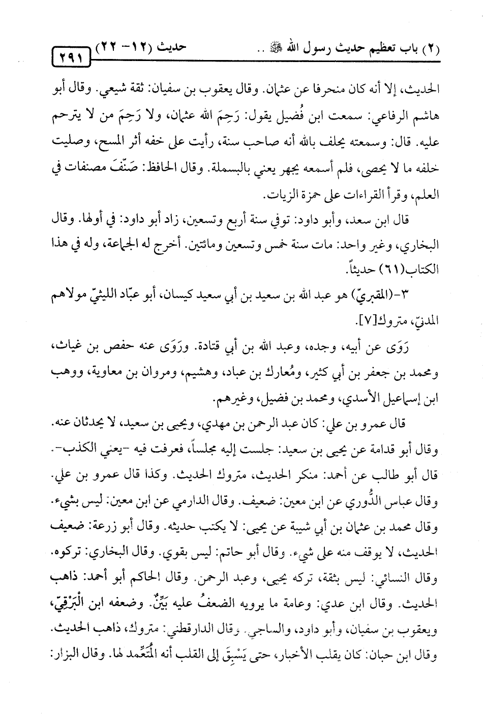 3 - (المقبريّ) هو عبد الله بن سعيد بن أبي سعيد كيسان، أبو عبّاد الليثيّ مولاهم المدني، متروك [7].