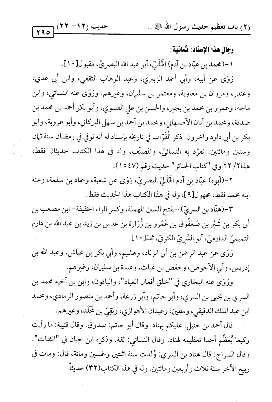 3 - (هنّاد بن السريّ) -بفتح السين المهملة، وكسر الراء الخفيفة- ابن مصعب بن أبي بكر بن شَبْر بن صَعْفُوق بن عَمْرو بن زُرَارة بن عدس بن زيد بن عبد الله بن دارم التميميّ الدارميّ، أبو السَّرِيّ الكوفيّ، ثقة [10].