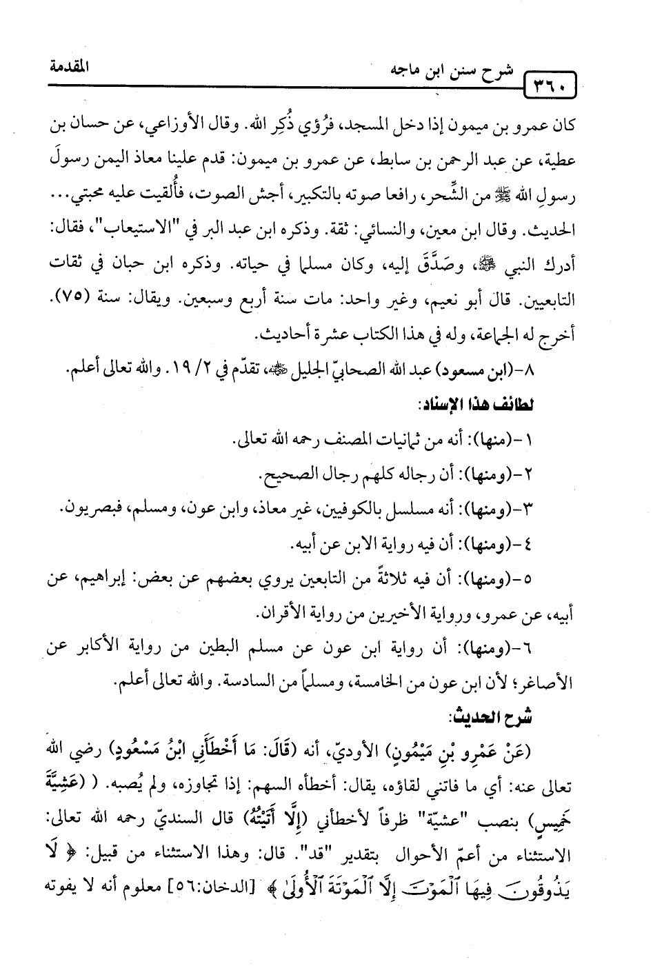 (عَنْ عَمْرِو بْنِ مَيْمُونٍ) الأوديّ، أنه (قَالَ: مَا أَخْطَأَنِي ابْنُ مَسْعُودٍ) رضي الله تعالى عنه: أي ما فاتني لقاؤه، يقال: أخطأه السهم: إذا تجاوزه، ولم يُصبه. (عَشِيَّةَ خَمِيسٍ) بنصب "عشيّة" ظرفًا لأخطأني (إِلَّا أَتَيْتُهُ) قال السنديّ رحمه الله تعالى: الاستثناء من أعمّ الأحوال بتقدير "قد". قال: وهذا الاستثناء من قبيل: {لَا يَذُوقُونَ فِيهَا الْمَوْتَ إِلَّا الْمَوْتَةَ الْأُولَى} [الدخان: 56] معلوم أنه لا يفوته