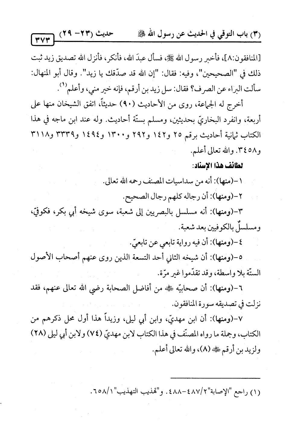 7 - (ومنها): أن ابن مهديّ، وابن أبي ليلى، وزيدًا هذا أول محل ذكرهم من الكتاب، وجملة ما رواه المصنّف في هذا الكتاب لابن مهديّ (74) ولابن أبي ليلى (28) ولزيد بن أرقم -رضي الله عنه- (8)، والله تعالى أعلم.