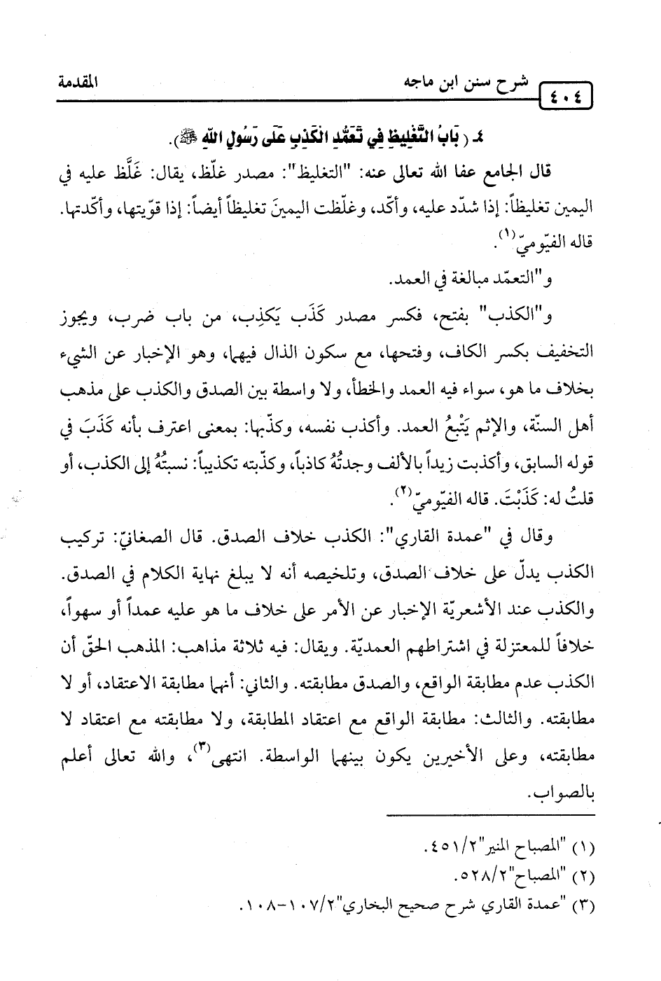 4 - (بابُ التَّغليظ في تَعمُّدِ الكَذبِ عَلَى رَسُولِ الله -صلى الله عليه وسلم-)