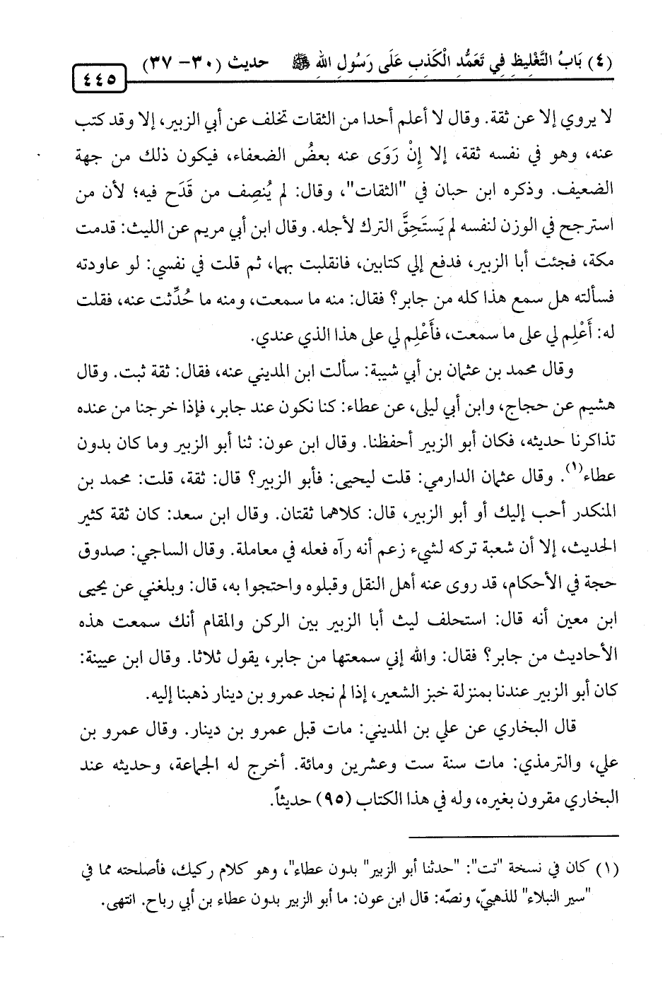 (¬1) كان في نسخة "تت": "حدثنا أبو الزبير" بدون عطاء"، وهو كلام ركيك، فأصلحته مما في "سير النبلاء" للذهبيّ، ونصّه: قال ابن عون: ما أبو الزبير بدون عطاء بن أبي رباح. انتهى.