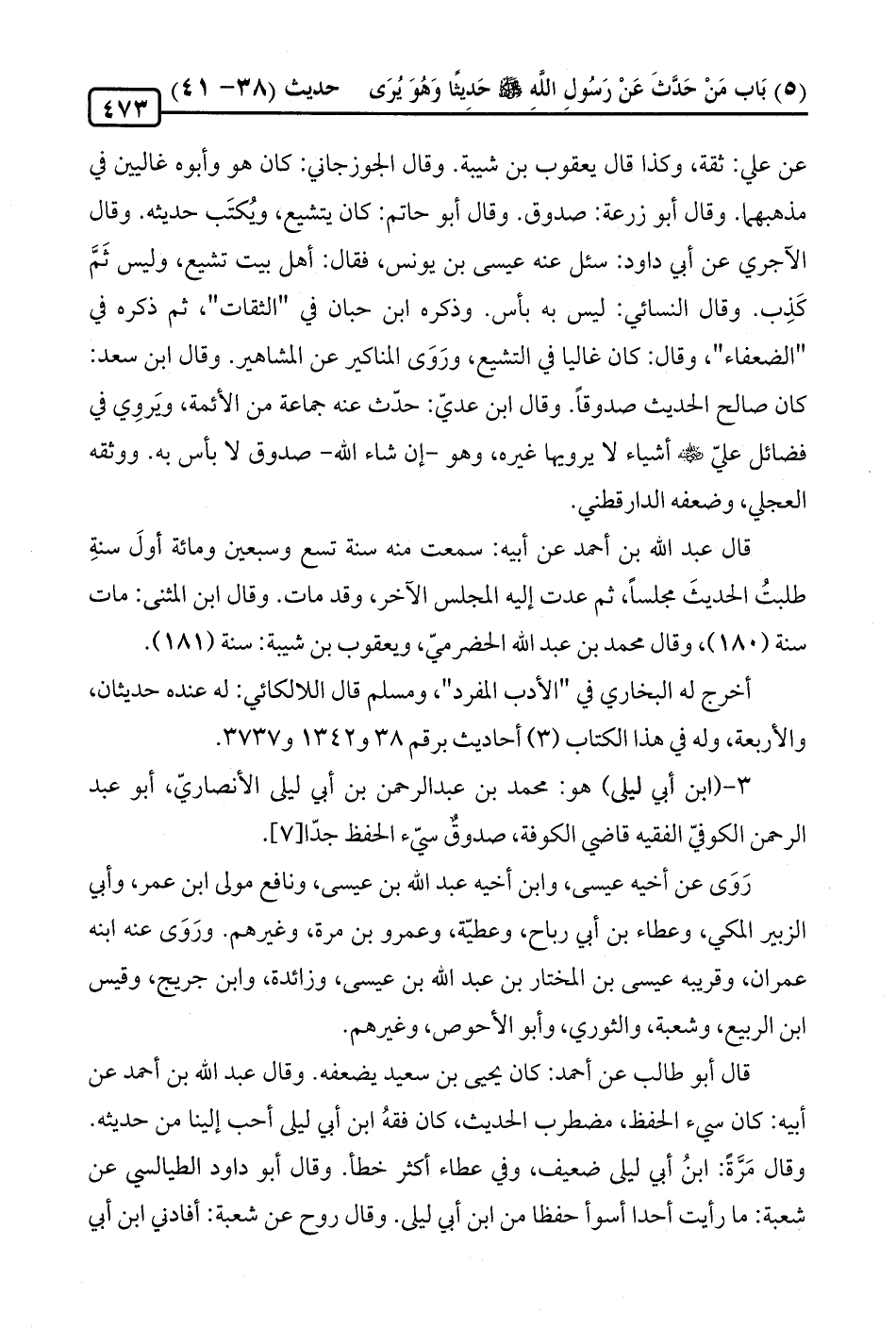 3 - (ابن أبي ليلى) هو: محمد بن عبد الرحمن بن أبي ليلى الأنصاريّ، أبو عبد الرحمن الكوفيّ الفقيه قاضي الكوفة، صدوقٌ سيّء الحفظ جدًّا [7].
