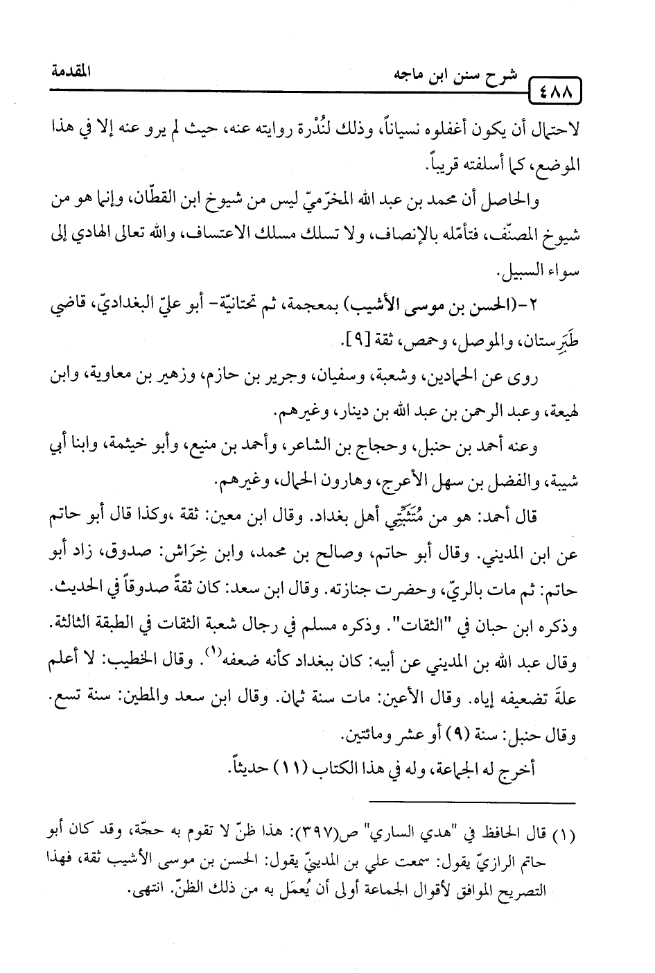 (¬1) قال الحافظ في "هدي الساري" ص (397): هذا ظنّ لا تقوم به حجّة، وقد كان أبو حاتم الرازيّ يقول: سمعت علي بن المدينيّ يقول: الحسن بن موسى الأشيب ثقة، فهذا التصريح الموافق لأقوال الجماعة أولى أن يُعمَل به من ذلك الظنّ. انتهى.