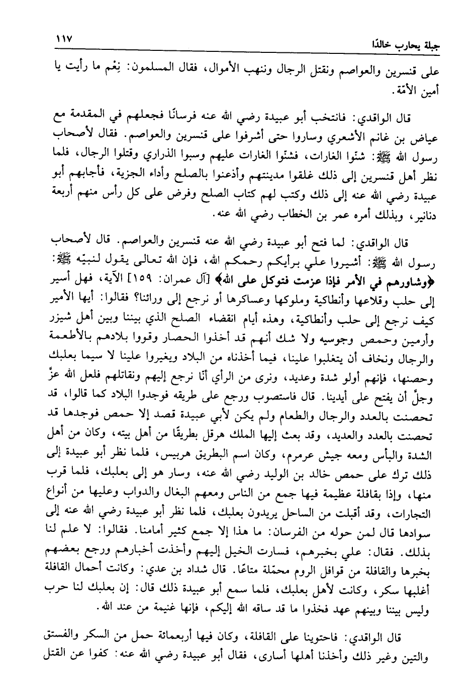 على قنسرين والعواصم ونقتل الرجال وننهب الأموال فقال المسلمون: نعم ما رأيت يا أمين الأمة.