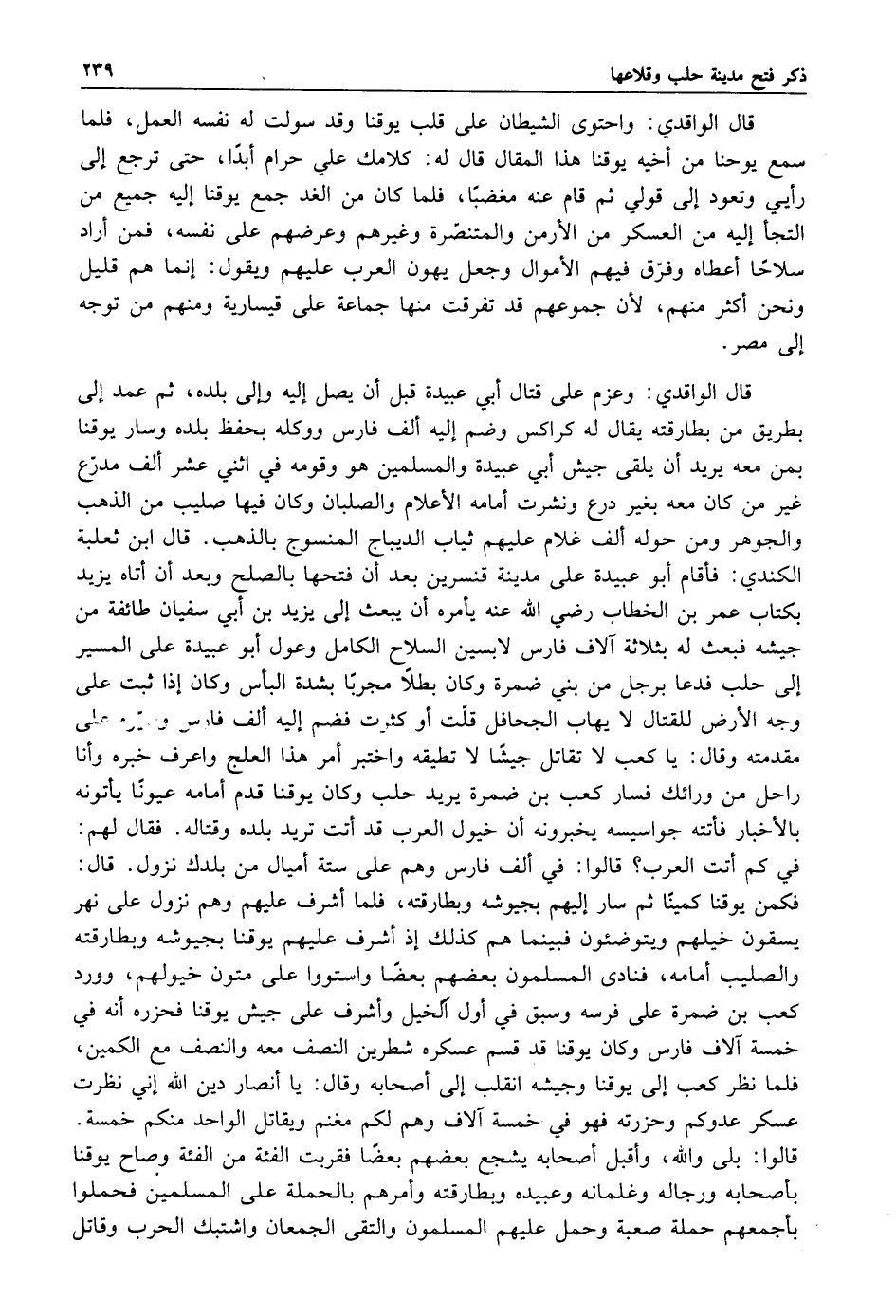 قال الواقدي: وعزم على قتال ابي عبيدة قبل أن يصل إليه والى بلده ثم عمد إلى بطريق من بطارقته يقال له كراكس وضم إليه ألف فارس ووكله بحفظ بلده وسار يوقنا بمن معه يريد أن يلقي جيش ابي عبيدة والمسلمين هو وقومه في اثني عشر ألف مدرع غير من كان معه بغير درع ونشرت أمامه الأعلام والصلبان وكان فيها صليب من الذهب والجوهر ومن حوله ألف غلام عليهم ثياب الديباج المنسوج بالذهب قال ابن ثعلبة الكندي فأقام أبو عبيدة على مدينة قنسرين بعد أن فتحها بالصلح وبعد أن أتاه يزيد بكتاب عمر بن الخطاب رضي الله عنه يأمره أن يبعث إلى يزيد بن أبي سفيان طائفة من جيشه فبعث له بثلاثة آلاف فارس لابسين السلاح الكامل وعول أبو عبيدة على المسير إلى حلب فدعا برجل من بني ضمرة وكان بطلا مجربا بشدة البأس وكان إذا ثبت على وجه الأرض للقتال لا يهاب الجحافل قلت: او كثرت فضم إليه ألف فارس وسيره على مقدمته وقال: يا كعب لا تقاتل جيشا لا تطيقه واختبر أمر هذا العلج واعرف خبره وأنا راحل من ورائك فسار كعب بن ضمرة يريد حلب وكان يوقنا قدم أمامه عيونا يأتون بالأخبار فأتته جواسيسه يخبرونه أن خيول العرب قد أتت تريد بلده وقتاله فقال لهم: في كم أتت العرب قالوا: في ألف فارس وهم على ستة أميال من بلدك نزول قال فكمن يوقنا كمينا ثم سار إليهم بجيوشه وبطارقته فلما أشرف عليهم وهم نزول على نهر يسقون خيلهم ويتوضئون فبينما هم كذلك إذ أشرف عليهم يوقنا بجيوشه وبطارقته والصليب أمامه فنادى المسلمون بعضهم بعضا واستووا على متون خيولهم وورد كعب بن ضمرة على فرسه وسبق في أول الخيل وأشرف على جيش يوقنا فحزره إنه في خمسة آلاف فارس وكان يوقنا قد قسم عسكره شطرين النصف معه والنصف مع الكمين فلما نظر كعب إلى يوقنا وجيشه انقلب إلى أصحابه وقال: يا أنصار دين الله إني نظرت عسكر عدوكم وحزرته فهو في خمسة آلاف وهم لكم مغنم ويقاتل الواحد منكم خمسة قالوا: بلى والله واقبل أصحابه يشجع بعضهم بعضا فقربت الفئة من الفئة وصاح يوقنا بأصحابه ورجاله وغلمانه وعبيده وبطارقته وأمرهم بالحملة على المسلمين فحملوا بأجمعهم حملة صعبة وحمل عليهم المسلمون والتقى الجمعان واشتبك الحرب وقاتل