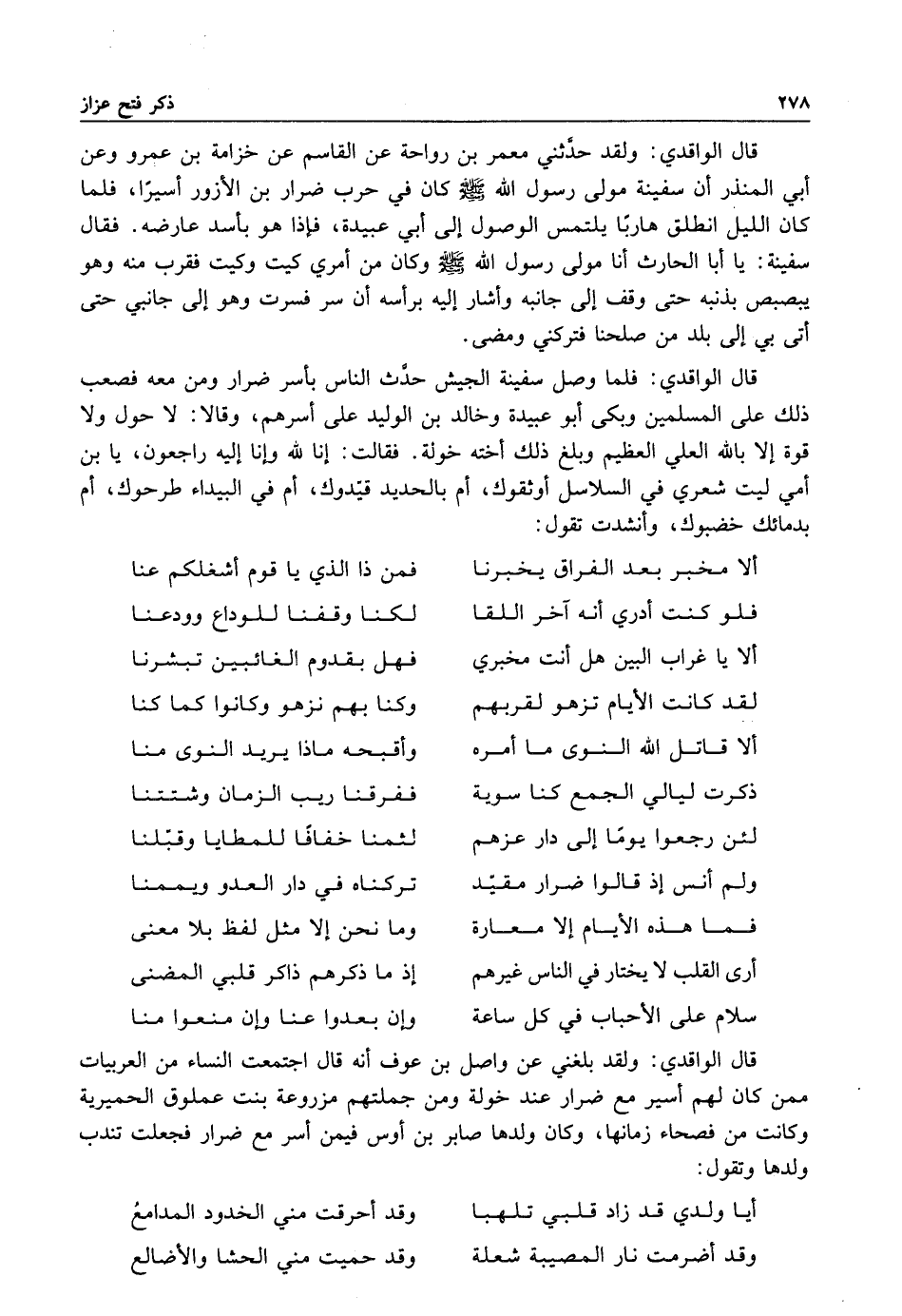 قال الواقدي: فلما وصل سفينة الجيش حدث الناس باسر ضرار ومن معه فصعب ذلك على المسلمين وبكى أبو عبيدة وخالد بن الوليد على أسرهم وقالا لا حول ولا قوة إلا بالله العلي العظيم وبلغ ذلك أخته خولة فقالت: أنا لله وأنا إليه راجعون يا بن أمي ليت شعري في السلاسل أوثقوك أم بالحديد قيدوك أم في البيداء طرحوك أم بدمائك خضبوك وأنشدت تقول:
