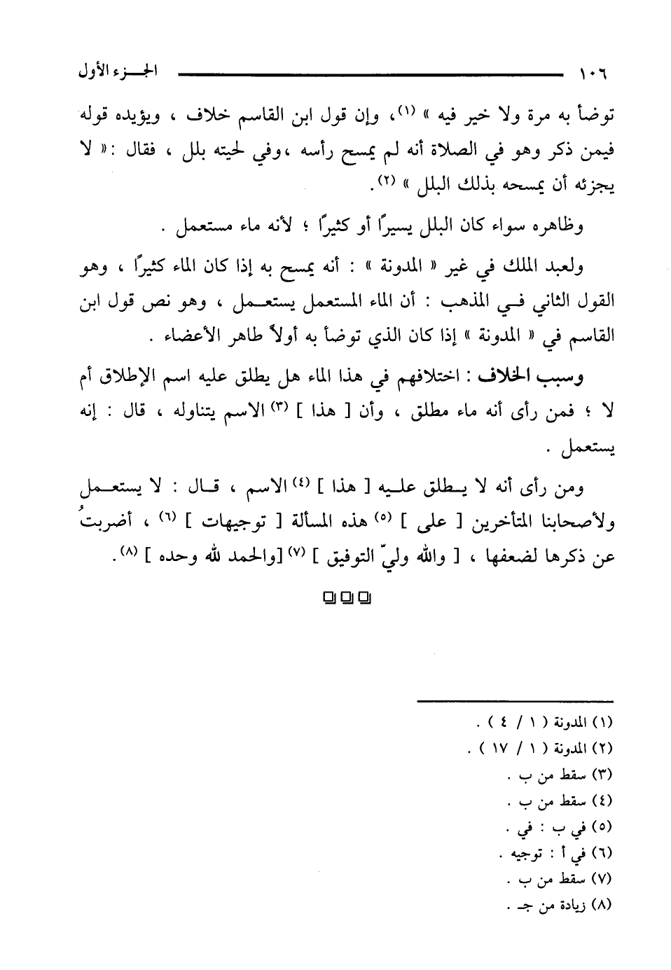 ومن رأى أنه لا يطلق عليه [هذا] (¬4) الاسم، قال: لا يستعمل ولأصحابنا المتأخرين [على] (¬5) هذه المسألة [توجيهات] (¬6)، أضربتُ عن ذكرها لضعفها، [والله وليّ التوفيق] (¬7) [والحمد لله وحده] (¬8).