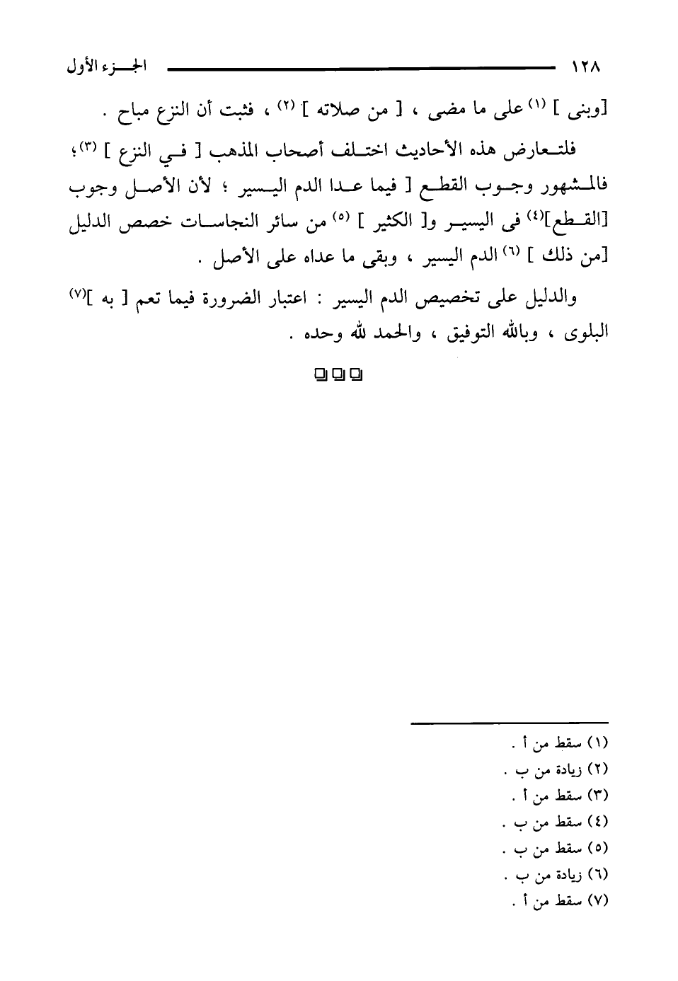 والدليل على تخصيص الدم اليسير: اعتبار الضرورة فيما تعم [به] (¬7) البلوى، وبالله التوفيق، والحمد لله وحده.