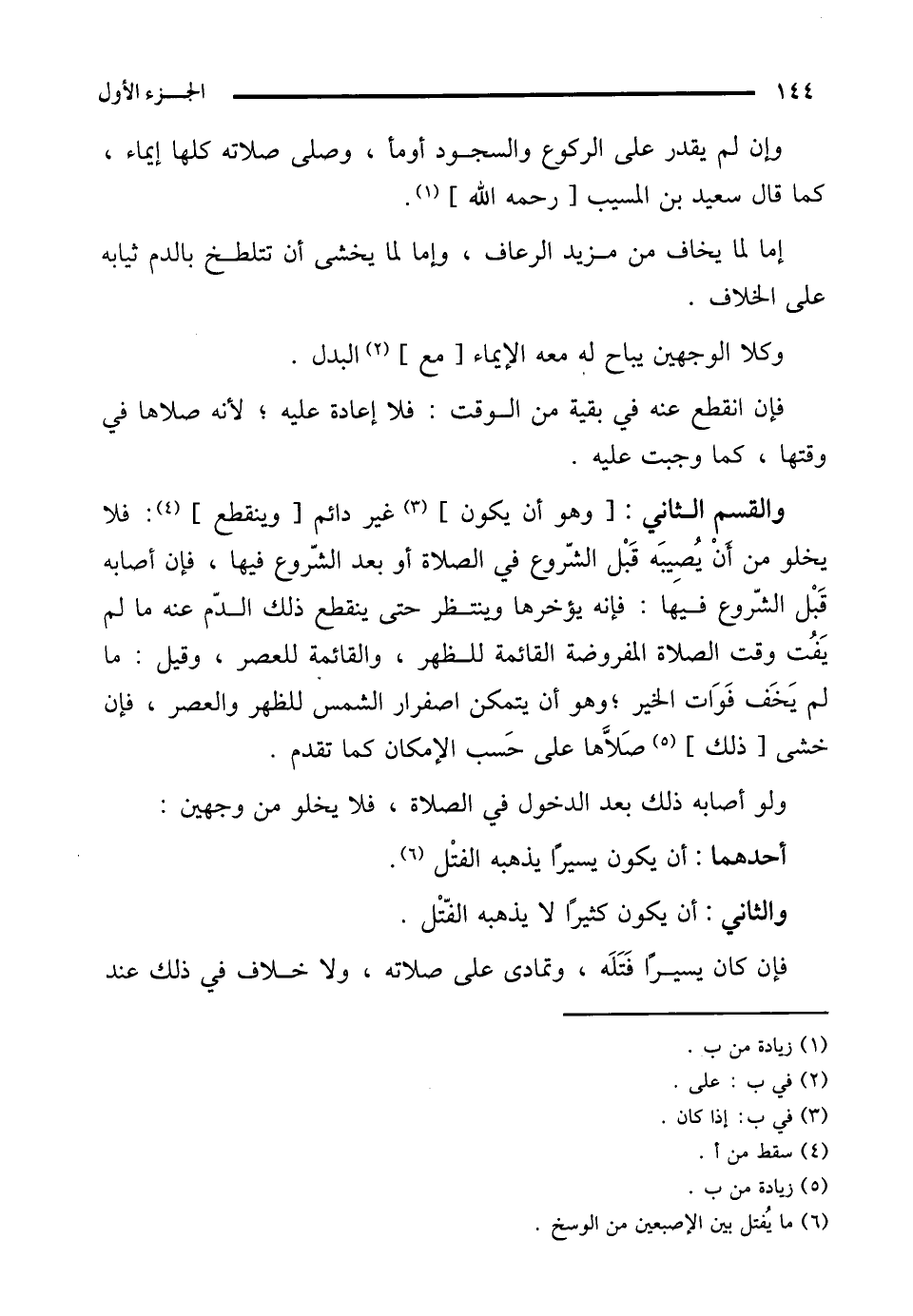 والقسم الثاني: [وهو أن يكون] (¬3) غير دائم [وينقطع] (¬4): فلا يخلو من أَنْ يُصِيبَه قَبْل الشّروع في الصلاة أو بعد الشّروع فيها، فإن أصابه قَبْل الشّروع فيها: فإنه يؤخرها وينتظر حتى ينقطع ذلك الدّم عنه ما لم يَفُت وقت الصلاة المفروضة القائمة للظهر، والقائمة للعصر، وقيل: ما لم يَخَف فَوَات الخير؛ وهو أن يتمكن اصفرار الشمس للظهر والعصر، فإن خشى [ذلك] (¬5) صَلاَّها على حَسب الإمكان كما تقدم.