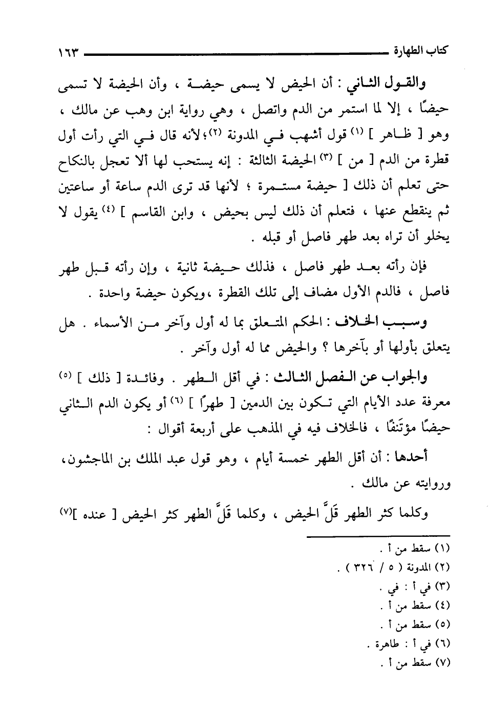 أحدها: أن أقل الطهر خمسة أيام، وهو قول عبد الملك بن الماجشون، وروايته عن مالك.