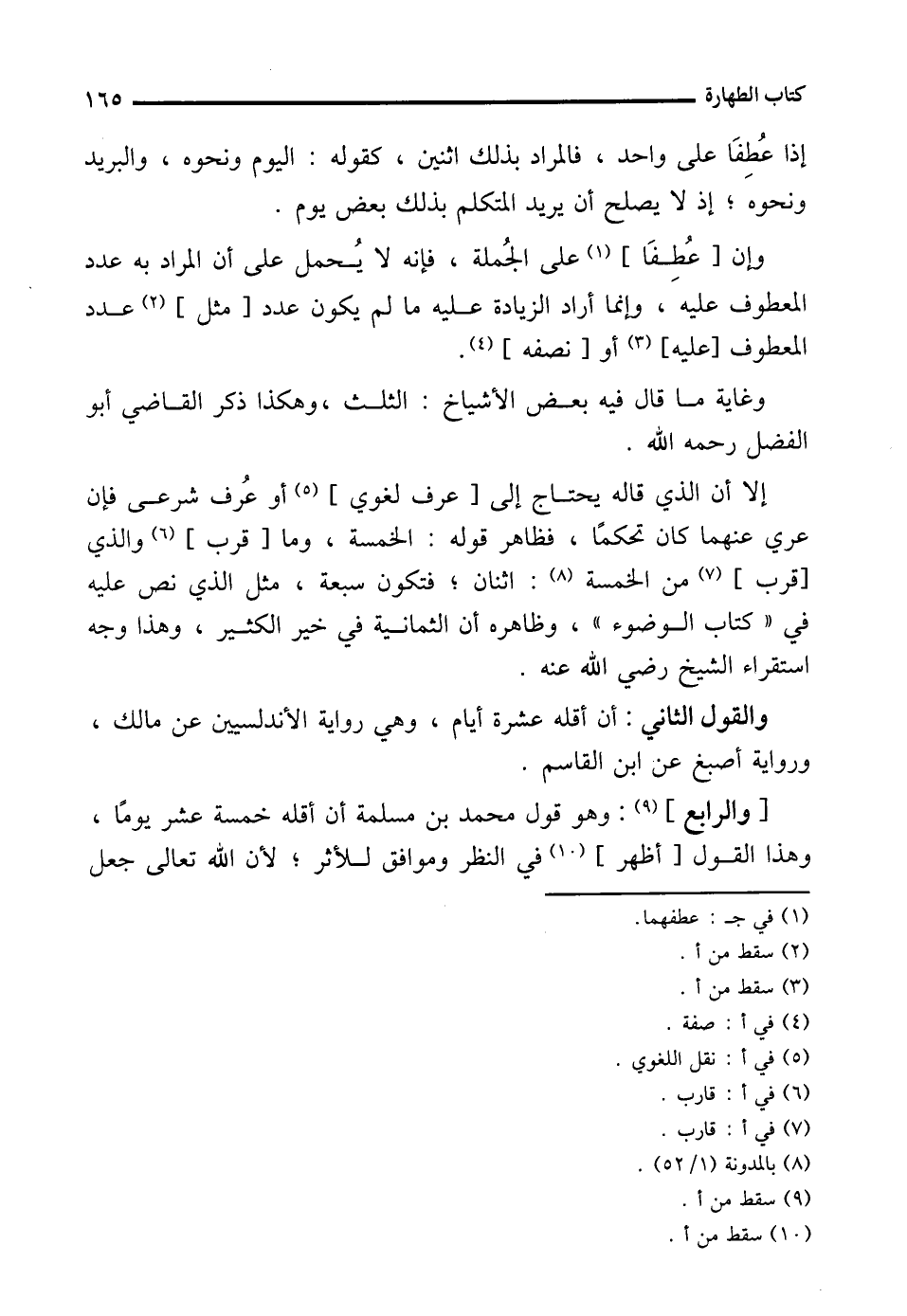 إلا أن الذي قاله يحتاج إلى [عرف لغوي] (¬5) أو عُرف شرعى فإن عري عنهما كان تحكمًا، فظاهر قوله: الخمسة، وما [قرب] (¬6) والذي [قرب] (¬7) من الخمسة (¬8): اثنان؛ فتكون سبعة، مثل الذي نص عليه في "كتاب الوضوء"، وظاهره أن الثمانية في خير الكثير، وهذا وجه استقراء الشيخ رضي الله عنه.