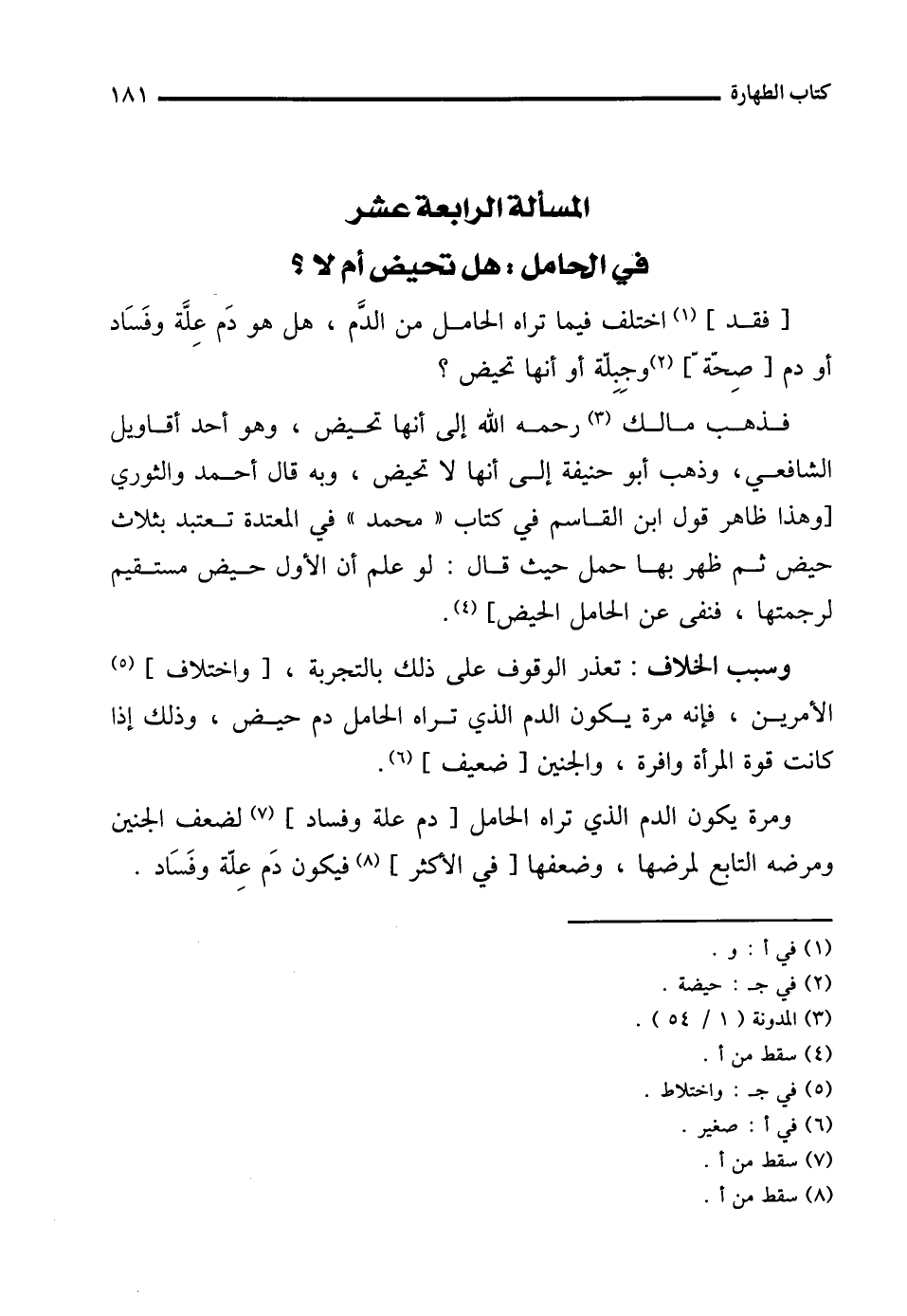 ومرة يكون الدم الذي تراه الحامل [دم علة وفساد] (¬7) لضعف الجنين ومرضه التابع لمرضها، وضعفها [في الأكثر] (¬8) فيكون دَم عِلّة وفَسَاد.