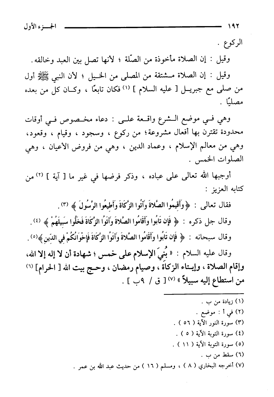 (¬7) أخرجه البخاري (8)، ومسلم (16) من حديث عبد الله بن عمر.