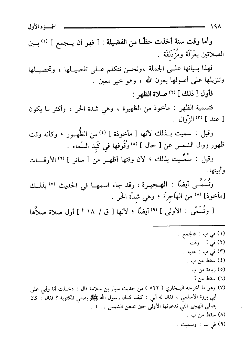 (¬7) وهو ما أخرجه البخاري (522) من حديث سيار بن سلامة قال: دخلت أنا وأبي على أبي برزة الأسلمي، فقال له أبي: كيف كان رسول الله - صلى الله عليه وسلم - يصلي المكتوبة؟ فقال: كان يصلي الهجير التي تدعونها الأولى حين تدهن الشمس .. ".