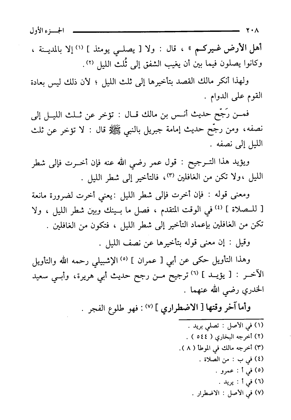 ويؤيد هذا الترجيح: قول عمر رضي الله عنه فإن أخرت فإلى شطر الليل، ولا تكن من الغافلين (¬3)، فالتأخير إلى شطر الليل.