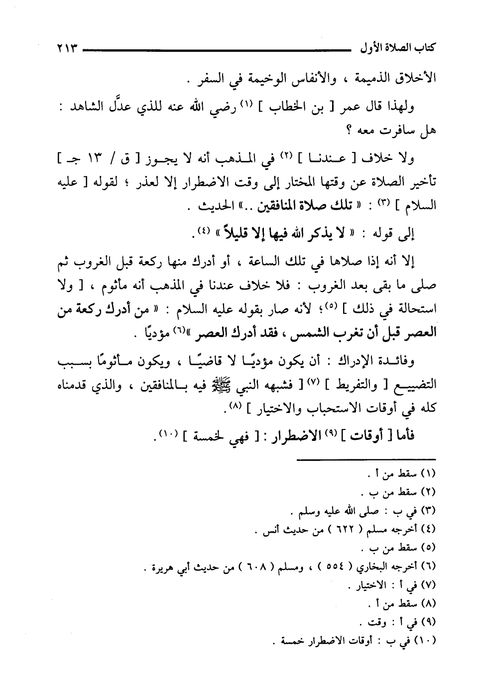 (¬10) في ب: أوقات الاضطرار خمسة.