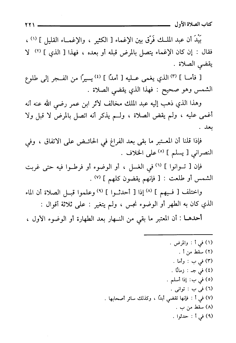 وهذا الذي ذهب إليه عبد الملك مخالف لأثر ابن عمر رضي الله عنه أنه أغمى عليه، ولم يقض الصلاة، ولم يذكر أنه اتصل بالمرض لا قبل ولا بعد.