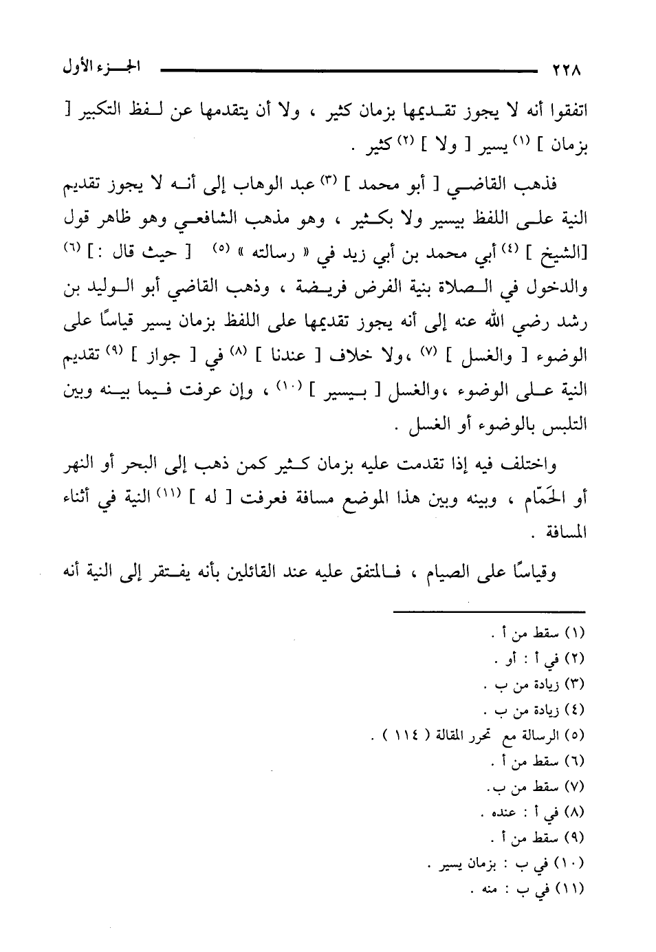 واختلف فيه إذا تقدمت عليه بزمان كثير كمن ذهب إلى البحر أو النهر أو الحَمّام، وبينه وبين هذا الموضع مسافة فعرفت [له] (¬11) النية في أثناء المسافة.
