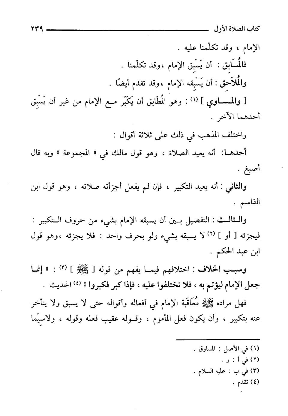 والثالث: التفصيل بين أن يسبقه الإِمام بشيء من حروف التكبير: فيجزئه [أو] (¬2) لا يسبقه بشيء ولو بحرف واحد: فلا يجزئه، وهو قول ابن عبد الحكم.
