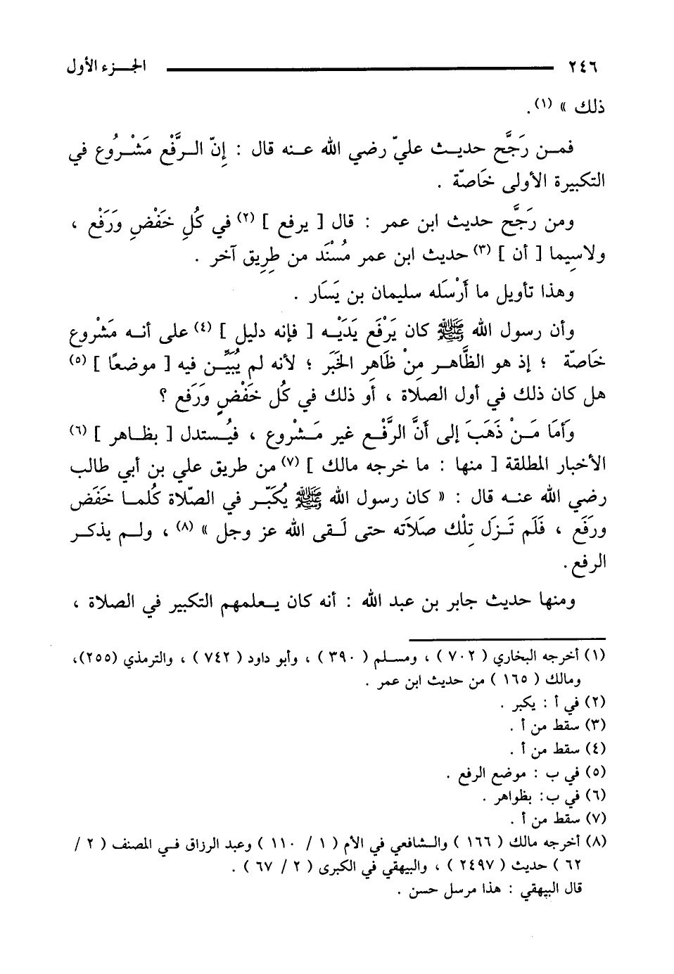 فمن رَجَّح حديث عليّ رضي الله عنه قال: إِنّ الرَّفعْ مَشْرُوع في التكبيرة الأولى خَاصّة.