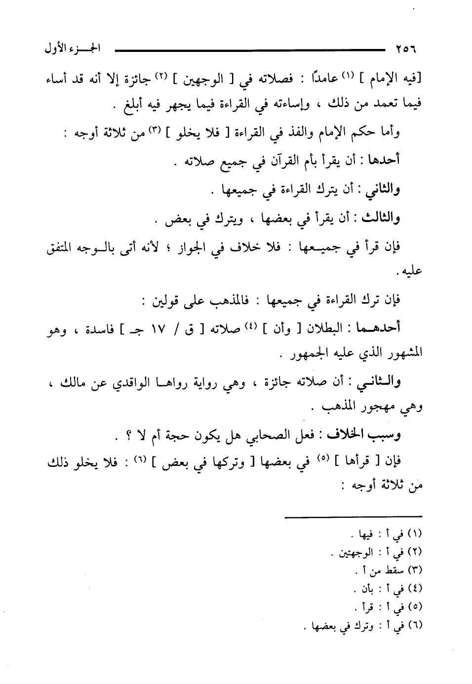 [فيه الإمام] (¬1) عامدًا: فصلاته في [الوجهين] (¬2) جائزة إلا أنه قد أساء فيما تعمد من ذلك، وإساءته في القراءة فيما يجهر فيه أبلغ.