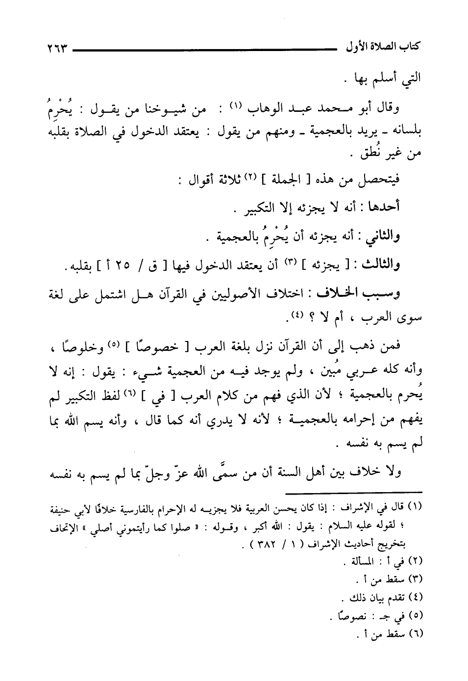 فمن ذهب إلى أن القرآن نزل بلغة العرب [خصوصًا] (¬5) وخلوصًا، وأنه كله عربي مُبين، ولم يوجد فيه من العجمية شيء: يقول: إنه لا يُحرم بالعجمية؛ لأن الذي فهم من كلام العرب [في] (¬6) لفظ التكبير لم يفهم من إحرامه بالعجمية؛ لأنه لا يدري أنه كما قال، وأنه يسم الله بما لم يسم به نفسه.