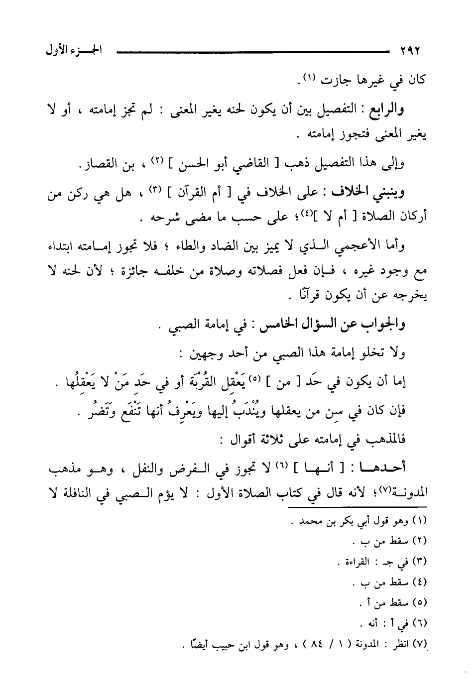 والجواب عن السؤال الخامس: في إمامة الصبي.