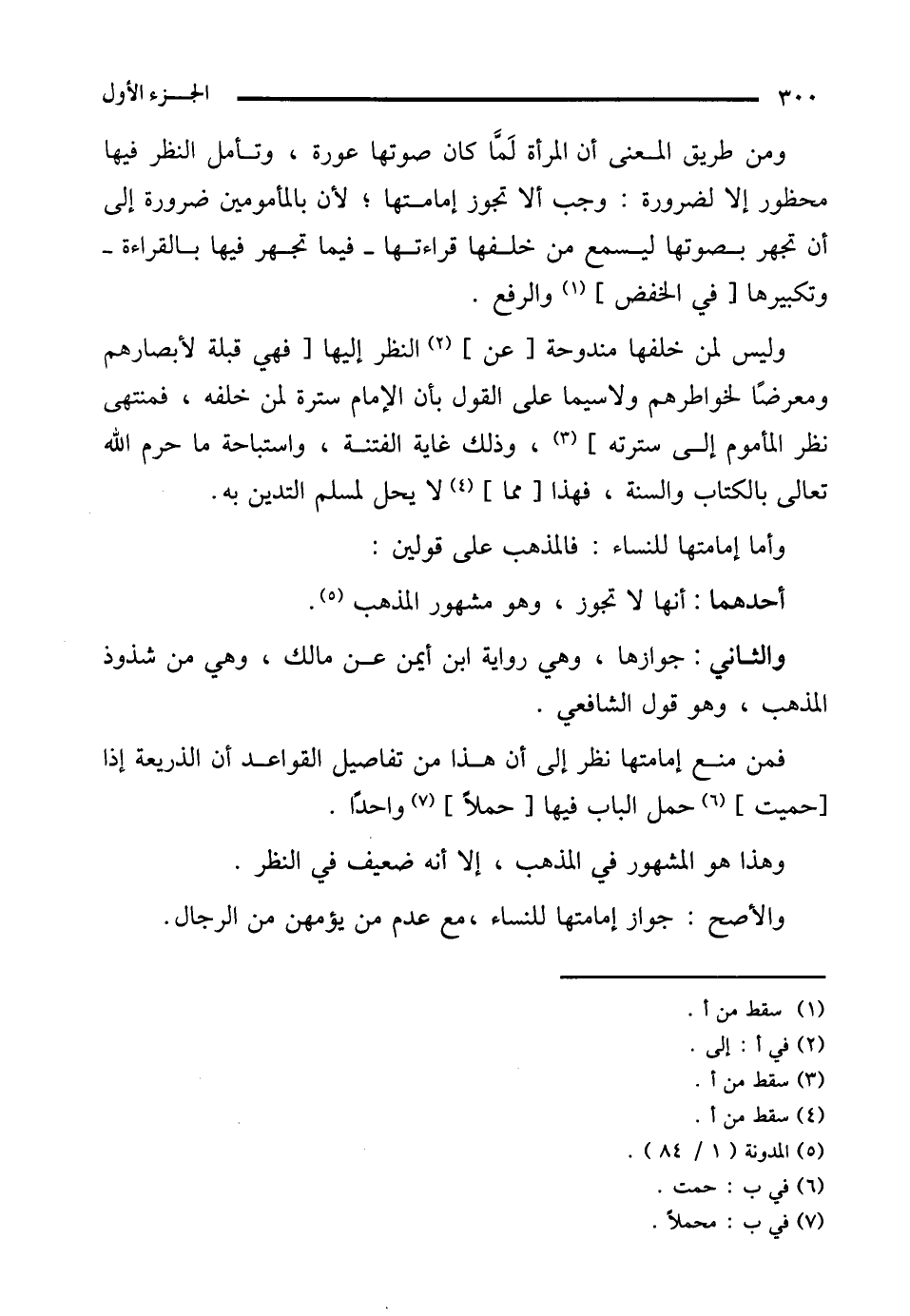 فمن منع إمامتها نظر إلى أن هذا من تفاصيل القواعد أن الذريعة إذا [حميت] (¬6) حمل الباب فيها [حملًا] (¬7) واحدًا.