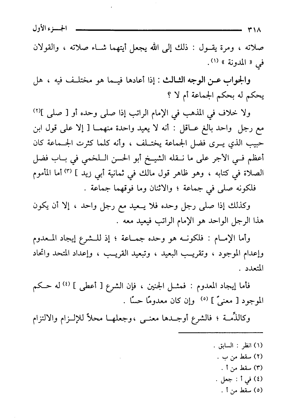 والجواب عن الوجه الثالث: إذا أعادها فيما هو مختلف فيه، هل يحكم له بحكم الجماعة أم لا؟