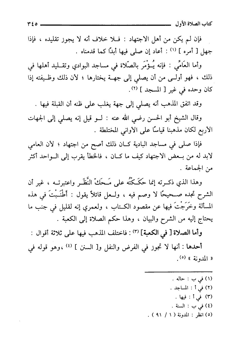 وهذا الذي ذكرته إنما حَكَكْتُه على مَحَكّ النَّظَر واعتبرته، غير أن الشرح تجده صحيحًا لا وصم فيه، ولعل قائلًا يقول: أطْنَبْتَ في هذه المسألة وخَرَجْتَ فيها عن مقصود الكتاب، ولعمري إنه لقليل في جنب ما يحتاج إليه من الشرح والبيان، وهذا حكم الصلاة إلى الكعبة.