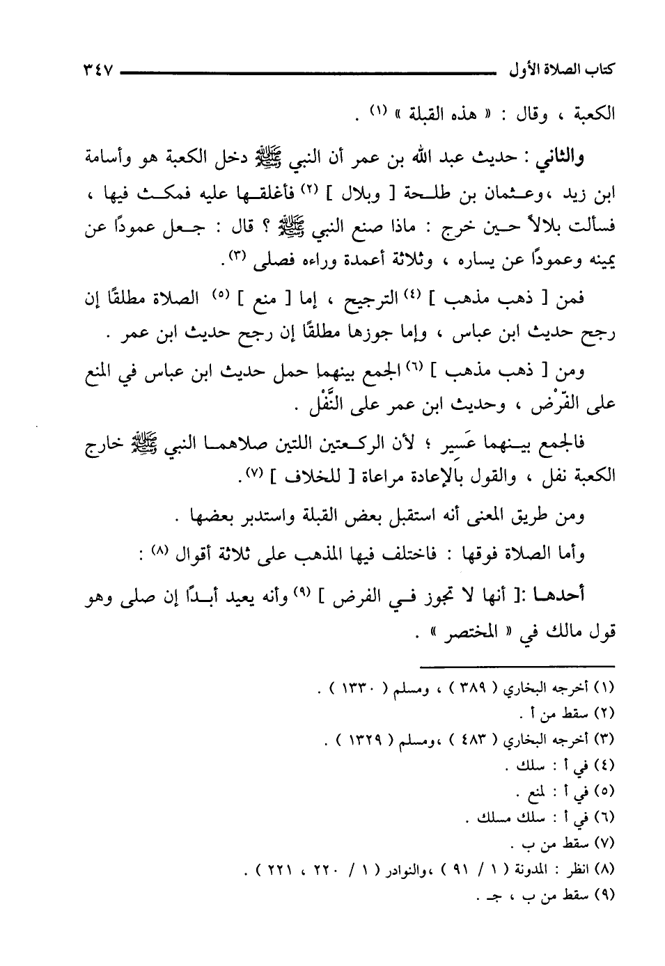 (¬8) انظر: المدونة (1/ 91)، والنوادر (1/ 220، 221).