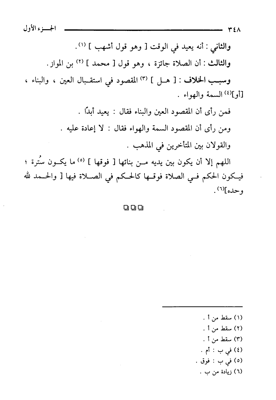اللهم إلا أن يكون بين يديه من بنائها [فوقها] (¬5) ما يكون سُترة؛ فيكون الحكم في الصلاة فوقها كالحكم في الصلاة فيها [والحمد لله وحده] (¬6).