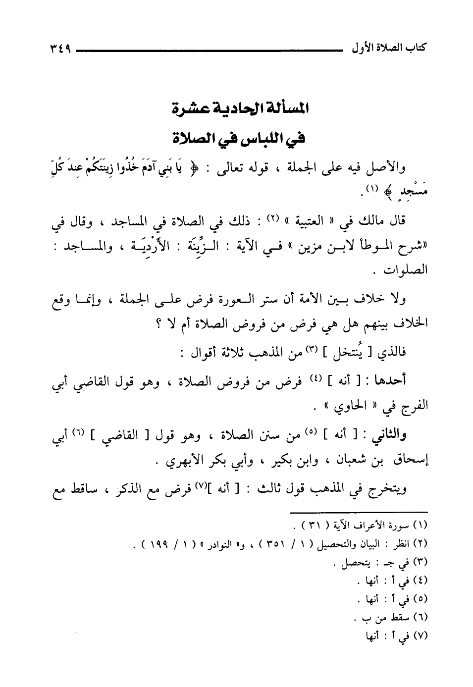 (¬2) انظر: البيان والتحصيل (1/ 351)، و"النوادر" (1/ 199).
