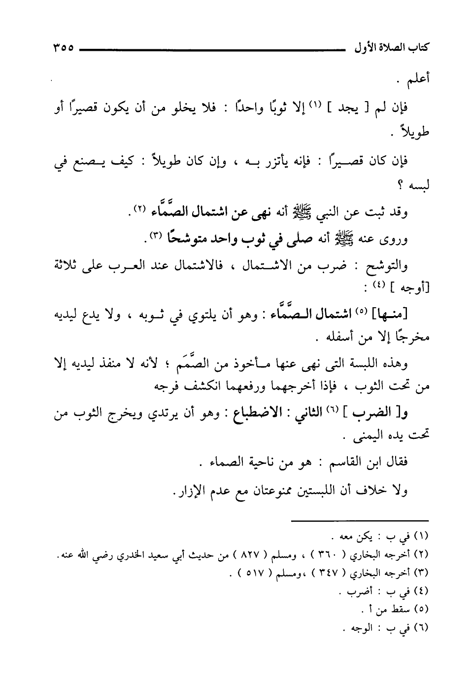 وقد ثبت عن النبي - صلى الله عليه وسلم - أنه نهى عن اشتمال الصَّمَّاء (¬2).