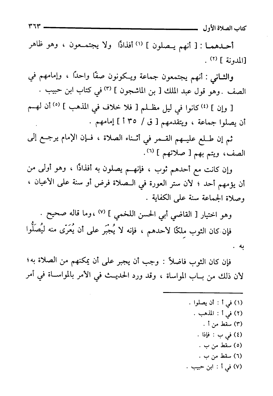 والثاني: أنهم يجتمعون جماعة ويكونون صفًا واحدًا، وإمامهم في الصف. وهو قول عبد الملك [بن الماشجون] (¬3) في كتاب ابن حبيب.