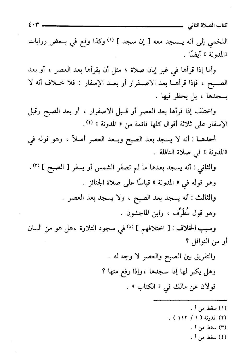 والثالث: أنه يسجد بعد الصبح، ولا يسجد بعد العصر. وهو قول مُطَرِّف، وابن الماجشون.